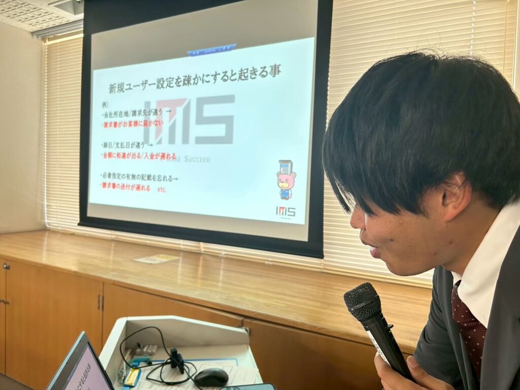 内容も日常の業務に即した内容から、IMSの理念や事業の目的まで多岐にわたります。その内容も事前に幹部相手にシミュレーションを行ってブラッシュアップされています。